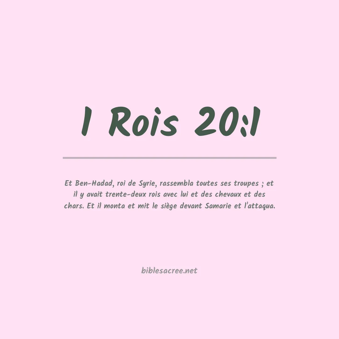 Le verset 1 du chapitre 20 du premier livre des Rois décrit l'événement où Ben-Hadad, roi de Syrie, rassemble toute son armée et trente-deux rois alliés pour assiéger Samarie et entrer en conflit avec Israël sous le règne du roi Achab.