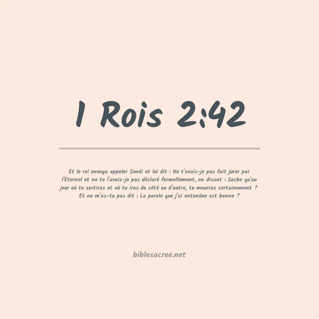 Le verset 1 Rois 2:42 est un avertissement du roi Salomon à Shimei pour rappeler la promesse qu'il a faite de ne pas quitter Jérusalem, sinon il serait mis à mort.