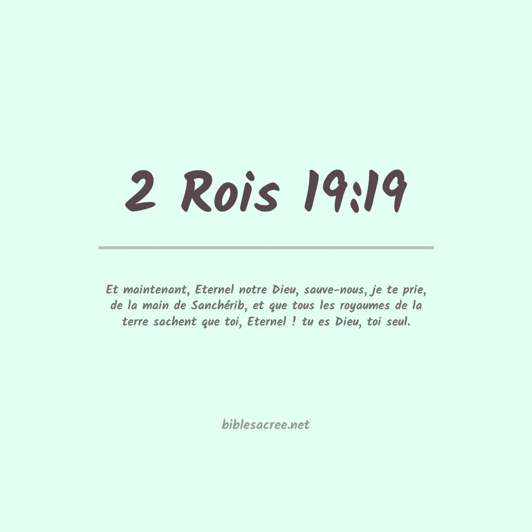 Et maintenant, Eternel notre Dieu, sauve-nous, je te prie, de la main de Sanchérib, et que tous les royaumes de la terre sachent que toi, Eternel ! tu es Dieu, toi seul.
