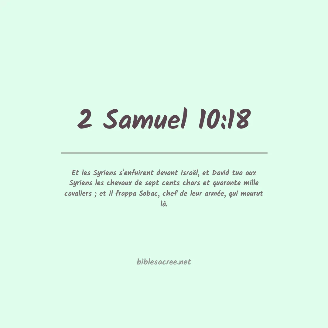 Et les Syriens s'enfuirent devant Israël, et David tua aux Syriens les chevaux de sept cents chars et quarante mille cavaliers ; et il frappa Sobac, chef de leur armée, qui mourut là.