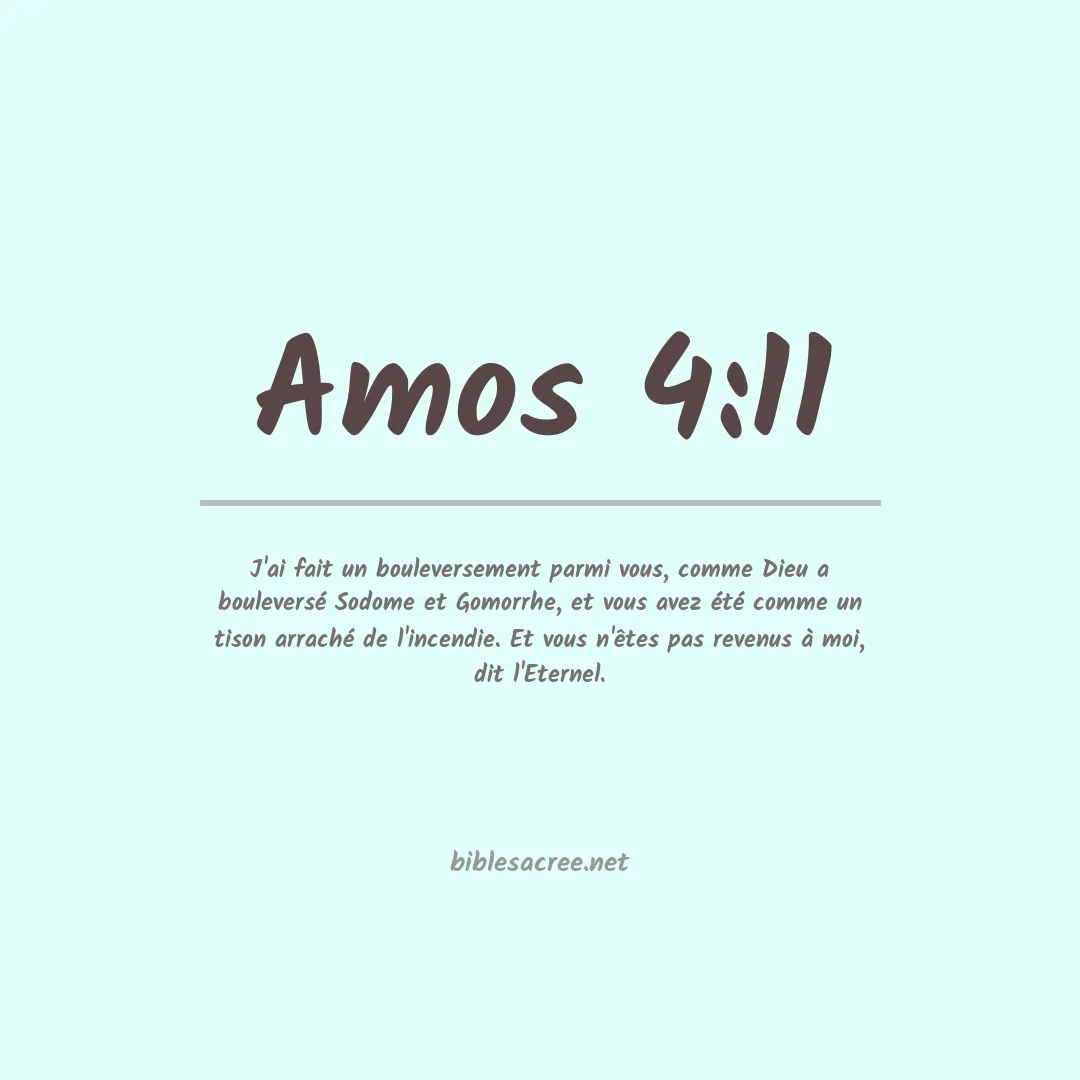 J'ai fait un bouleversement parmi vous, comme Dieu a bouleversé Sodome et Gomorrhe, et vous avez été comme un tison arraché de l'incendie. Et vous n'êtes pas revenus à moi, dit l'Eternel.