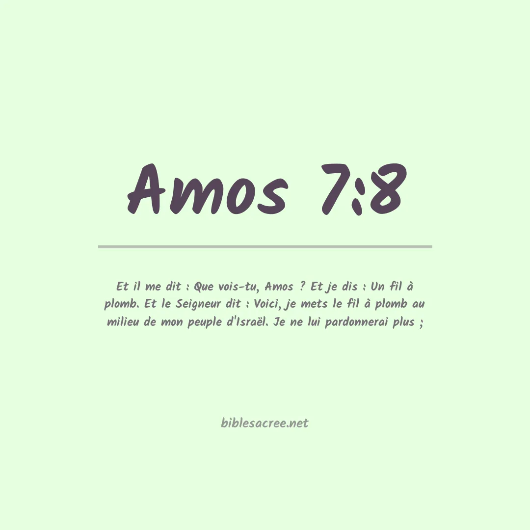 Et il me dit : Que vois-tu, Amos ? Et je dis : Un fil à plomb. Et le Seigneur dit : Voici, je mets le fil à plomb au milieu de mon peuple d'Israël. Je ne lui pardonnerai plus ;