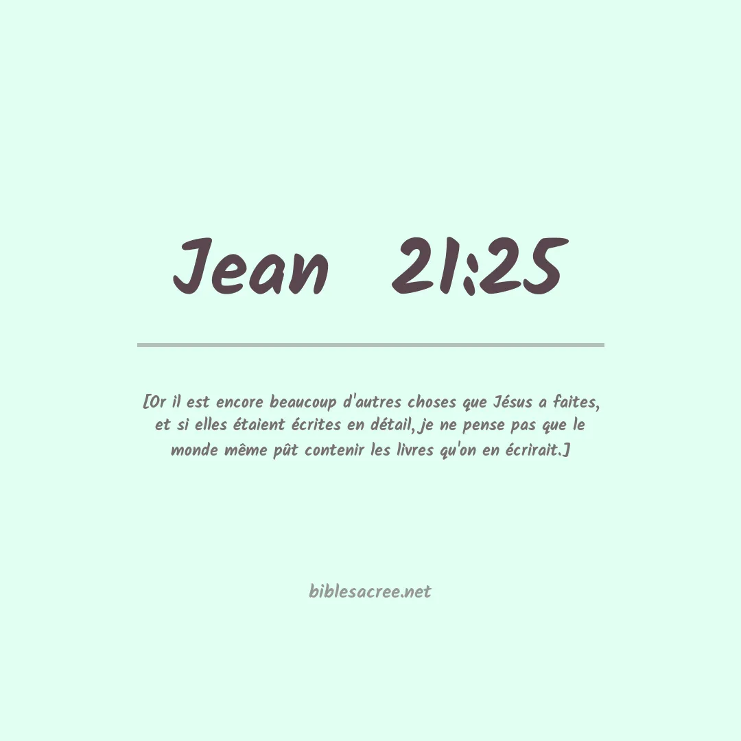 [Or il est encore beaucoup d'autres choses que Jésus a faites, et si elles étaient écrites en détail, je ne pense pas que le monde même pût contenir les livres qu'on en écrirait.]