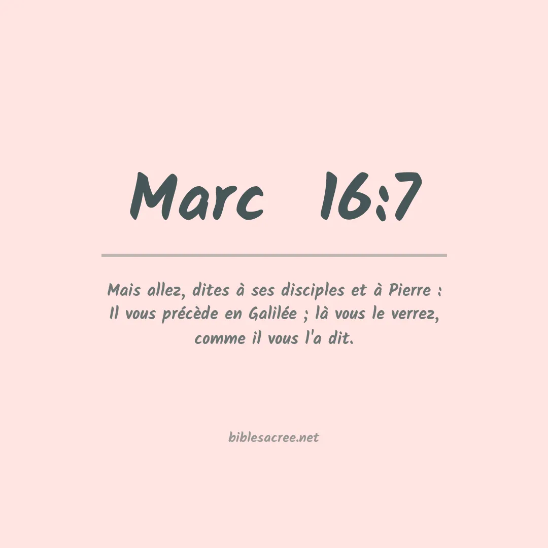 Le texte de Marc 16:7 exprime l'annonce de la résurrection de Jésus aux femmes au tombeau : "Mais allez dire à ses disciples et à Pierre qu'il vous précède en Galilée : c'est là que vous le verrez, comme il vous l'a dit".